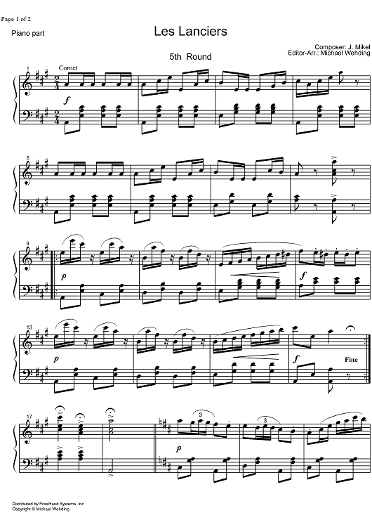 Digital Sheet Music for Les Lanciers 5th Round - Piano by J. Mikel, Michael Wehding scored for Orchestra; id:324263