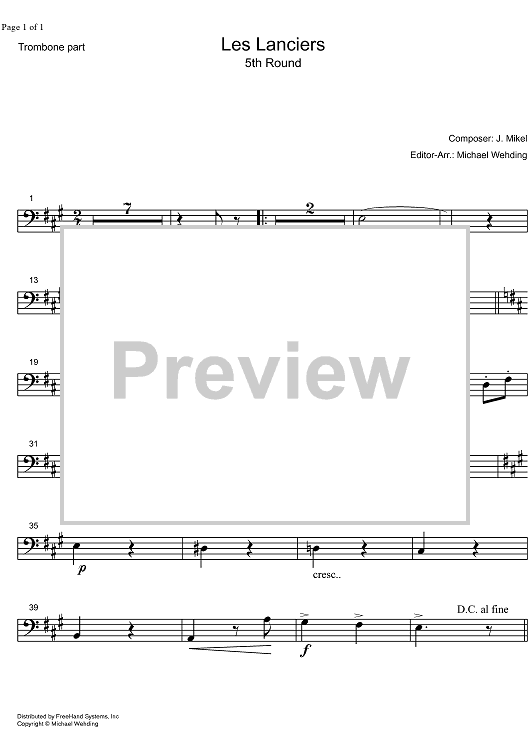 Digital Sheet Music for Les Lanciers 5th Round - Trombone by J. Mikel, Michael Wehding scored for Orchestra; id:324264
