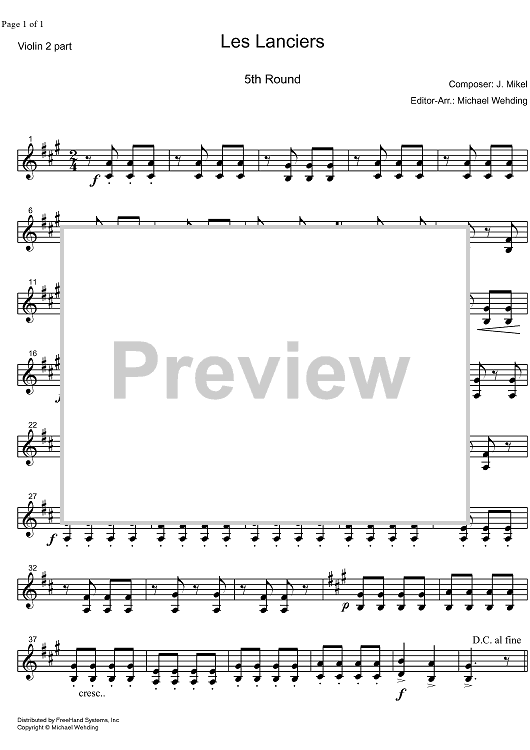 Digital Sheet Music for Les Lanciers 5th Round - Violin 2 by J. Mikel, Michael Wehding scored for Orchestra; id:324268