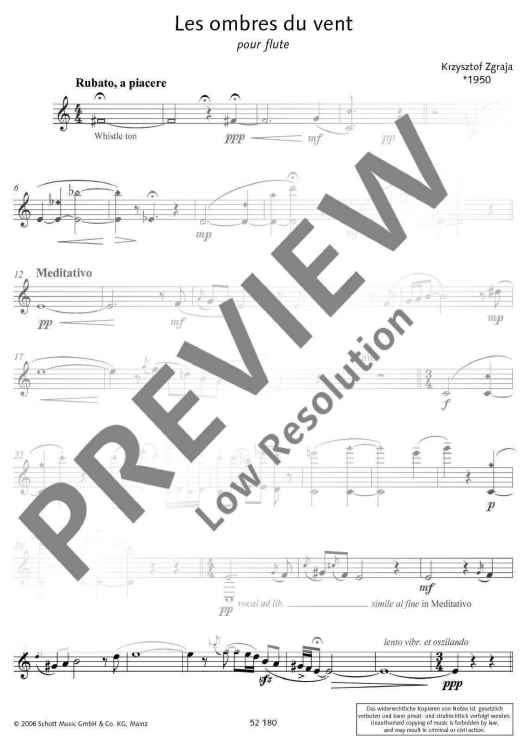 Les ombres du vent - The Shadows of the Wind - is an impressionistic composition, written with a great sense of sound and of the possibilities of the flute. The Polish composer Krystof Zgraja wrote numerous pieces for flute, including '3 virtuose Flamenco-Studien' for solo flute (ED 8425).