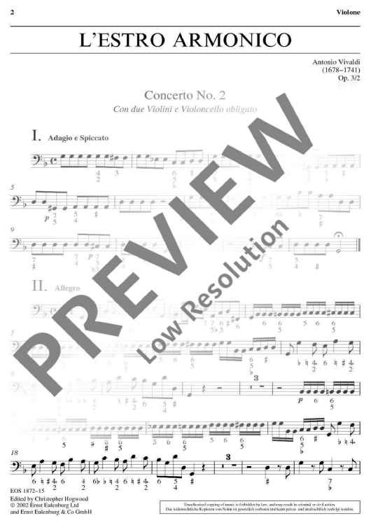 "L'estro Armonico - Double Bass" Sheet Music by Antonio Vivaldi