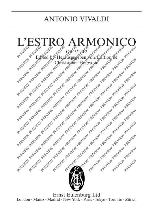 "L'estro Armonico - Full Score" Sheet Music by Antonio Vivaldi