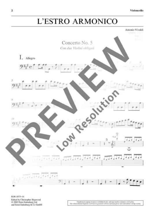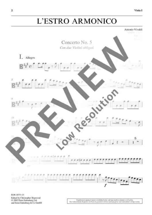 Digital Sheet Music for L'Estro Armonico in A major - Set of Parts by Antonio Vivaldi scored for String Orchestra With 2 Obligatory Violins; id:476901