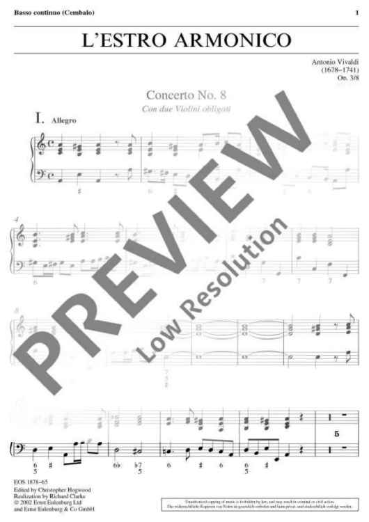 "L'Estro Armonico in A minor - Basso Continuo" Sheet Music by Antonio Vivaldi