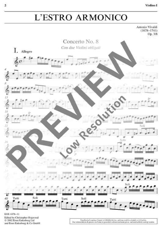 "L'Estro Armonico in A minor - Violin I" Sheet Music by Antonio Vivaldi