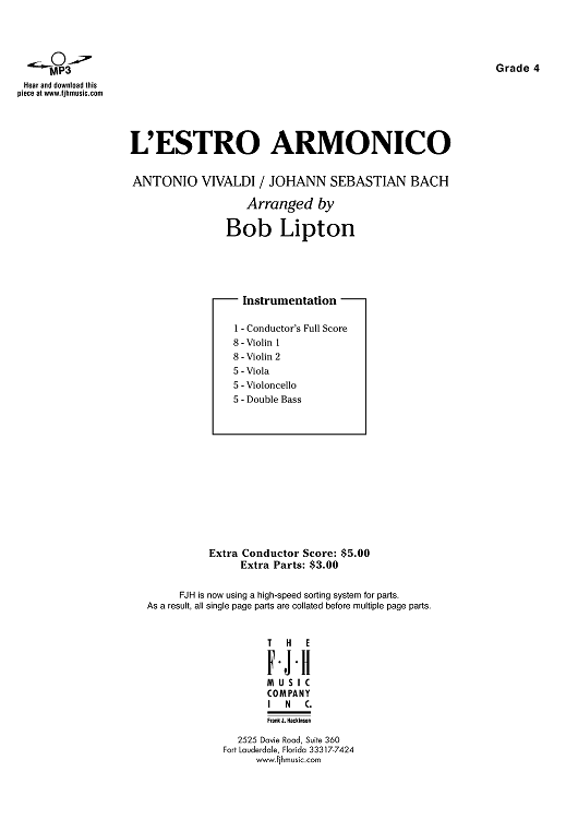 Digital Sheet Music for L'estro armonico - Score Cover by Antonio Vivaldi, Johann Sebastian Bach, Bob Lipton scored for Orchestra; id:447394