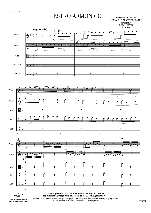 Digital Sheet Music for L'estro armonico - Score by Antonio Vivaldi, Johann Sebastian Bach, Bob Lipton scored for Orchestra; id:447393