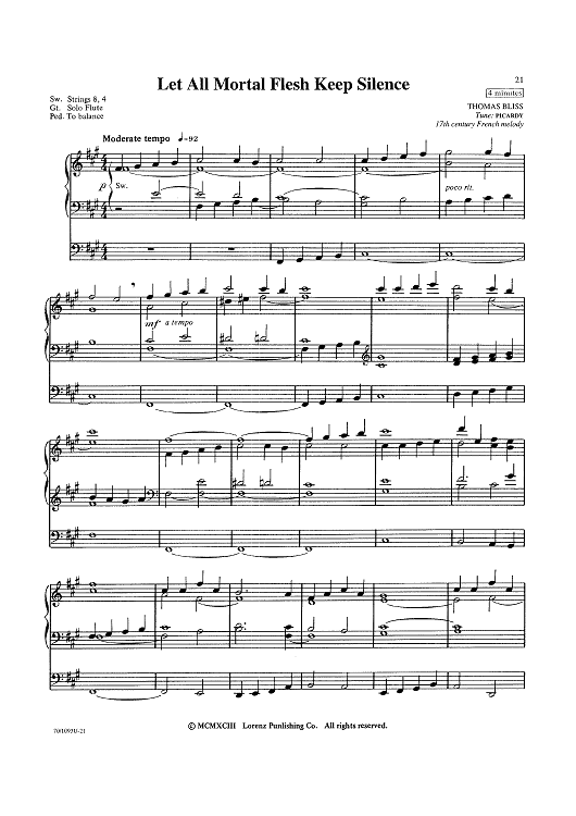 Digital Sheet Music for Let All Mortal Flesh Keep Silence by Thomas Bliss, French Melody scored for Organ Solo; id:434793