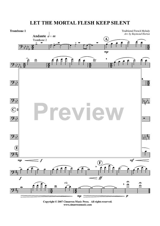 "Let All Mortal Flesh Keep Silent - Trombone 1" Sheet Music by Traditional French Melody