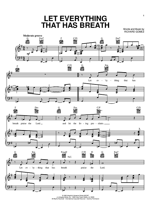Digital Sheet Music for Let Everything That Has Breath by Richard Gomez scored for Piano/Vocal/Chords; id:374028