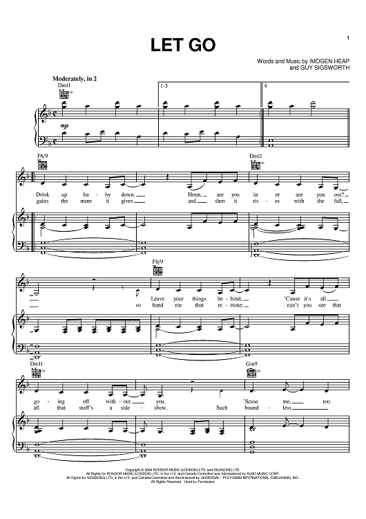Digital Sheet Music for Let Go by Guy Sigsworth, Frou Frou, Imogen Heap scored for Piano/Vocal/Chords; id:384078