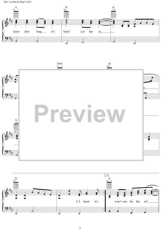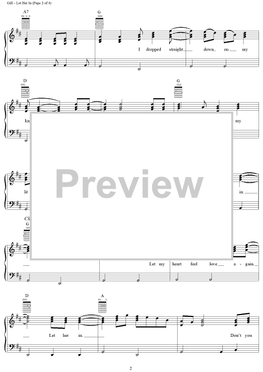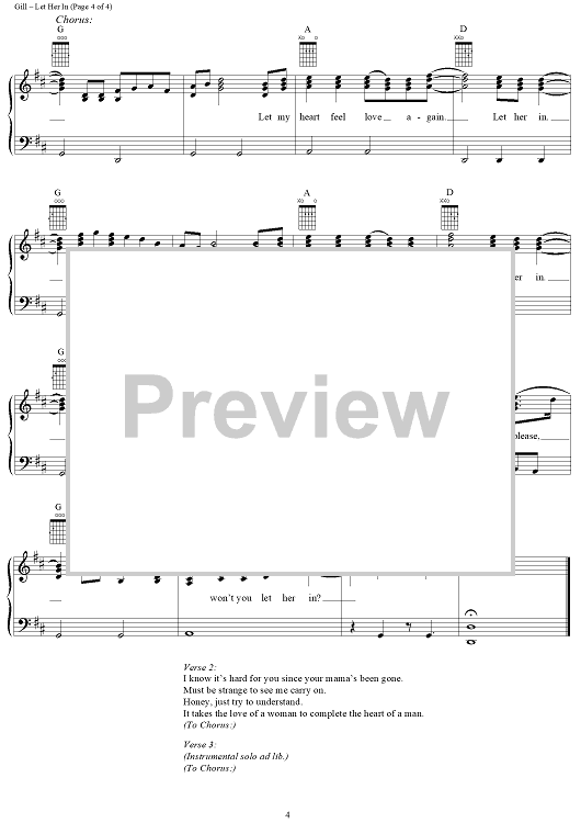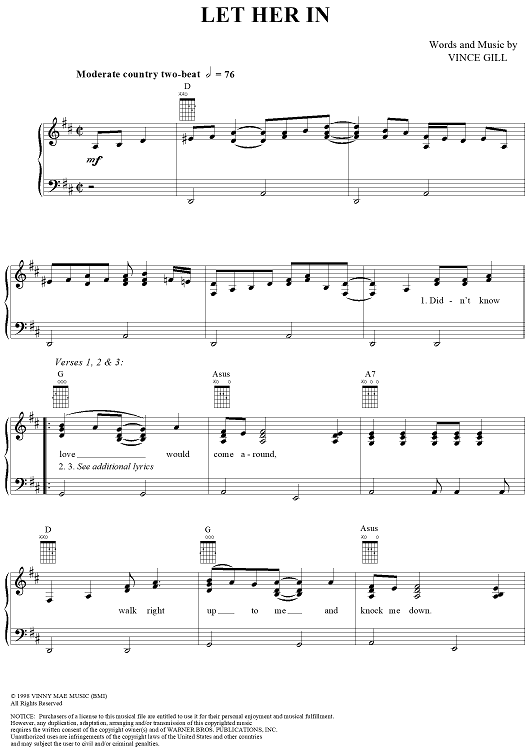 Digital Sheet Music for Let Her In by Vince Gill scored for Piano/Vocal/Chords; id:268540