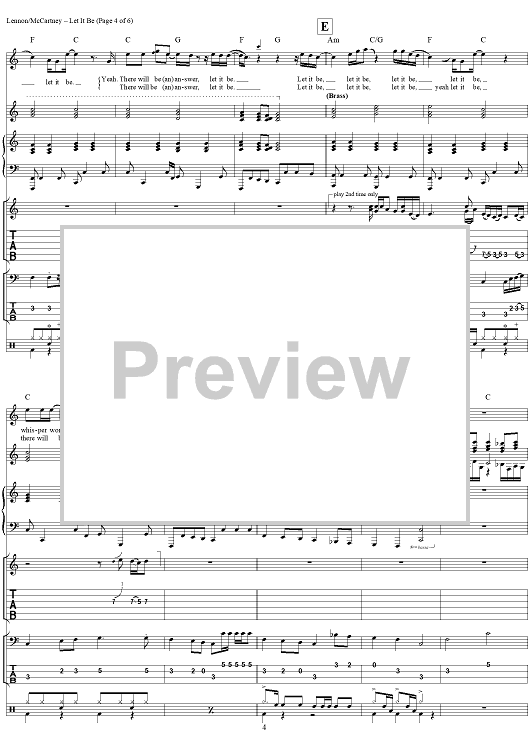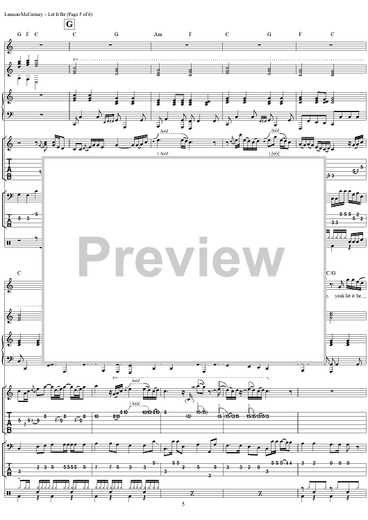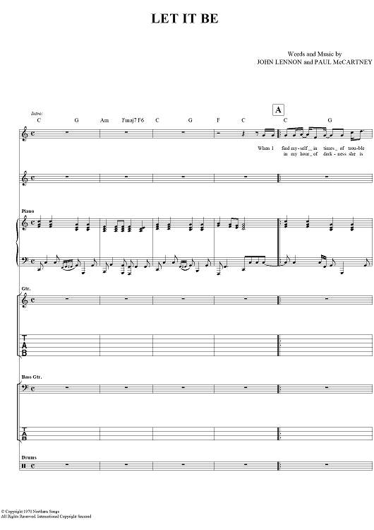 Digital Sheet Music for Let It Be by Paul McCartney, The Beatles, John Lennon scored for Guitar Tab/Vocal/Chords; id:361625