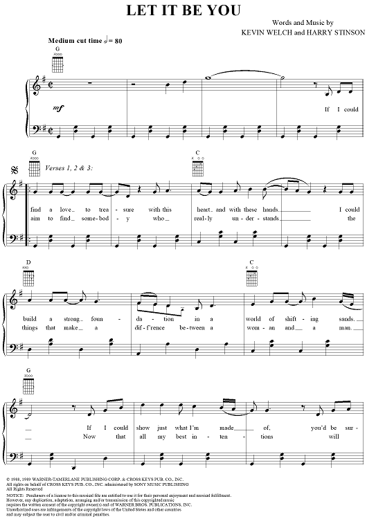 Digital Sheet Music for Let it Be You by Ricky Skaggs, Kevin Welch, Harry Stinson scored for Piano/Vocal/Chords; id:220414