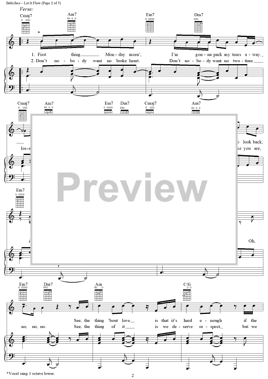 Digital Sheet Music for Let It Flow by Toni Braxton, Babyface scored for Piano/Vocal/Chords; id:113727