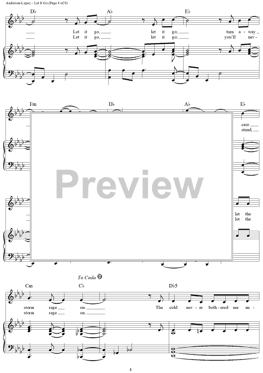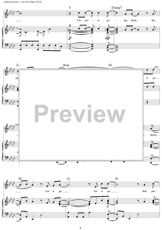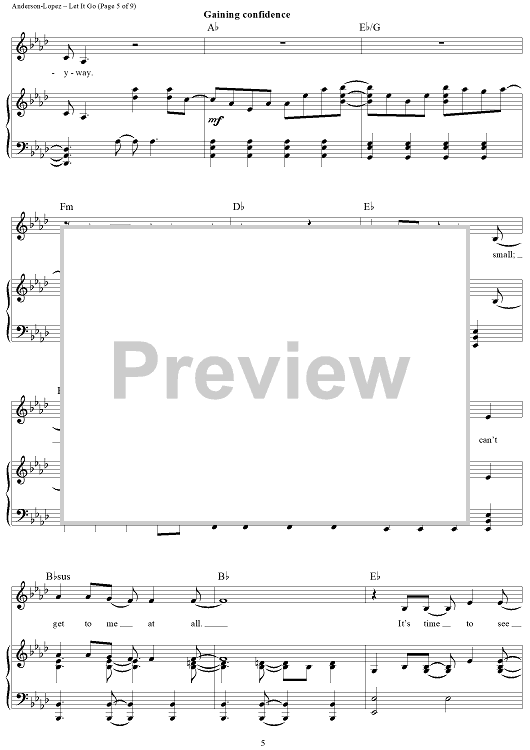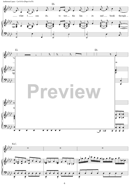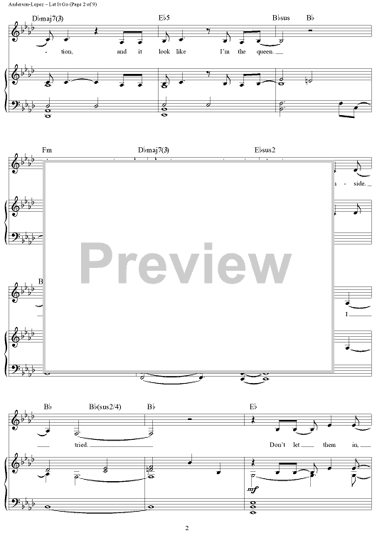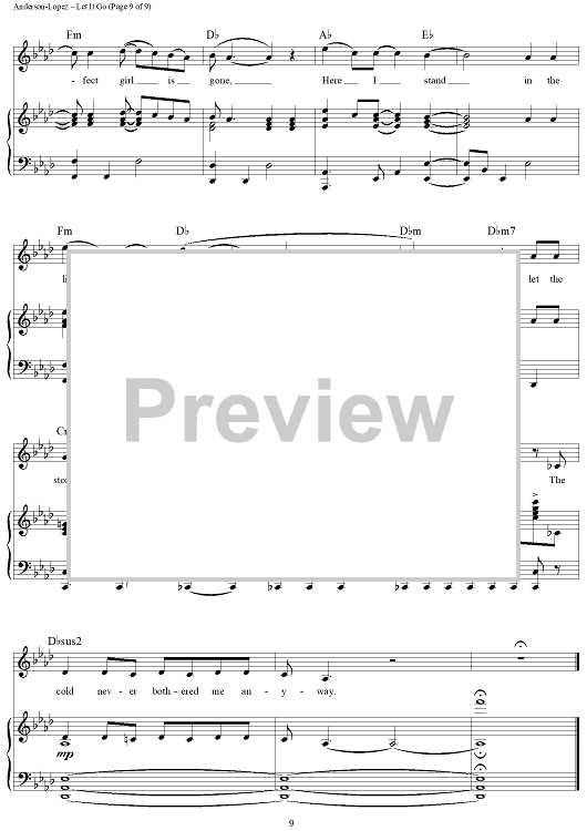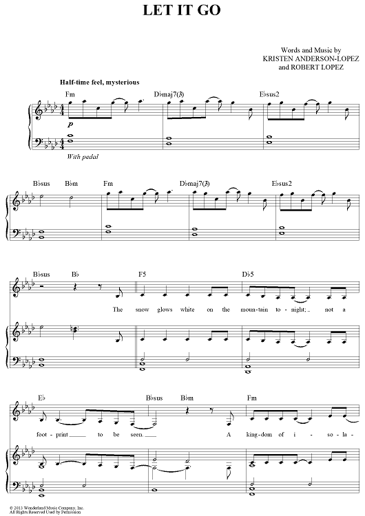 Digital Sheet Music for Let it Go (Idina Menzel) by Robert Lopez, Kristen Anderson-Lopez, Idina Menzel scored for Piano/Vocal/Chords; id:440993