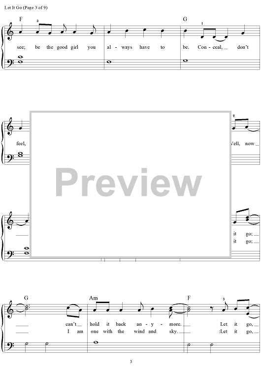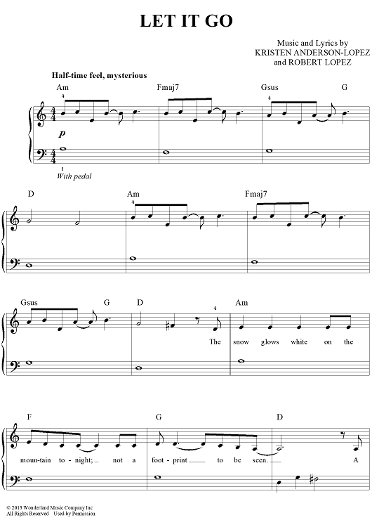 Digital Sheet Music for Let it Go by Robert Lopez, Demi Lovato, Kristen Anderson-Lopez scored for Big Note Piano; id:444993