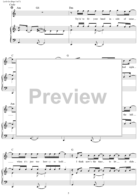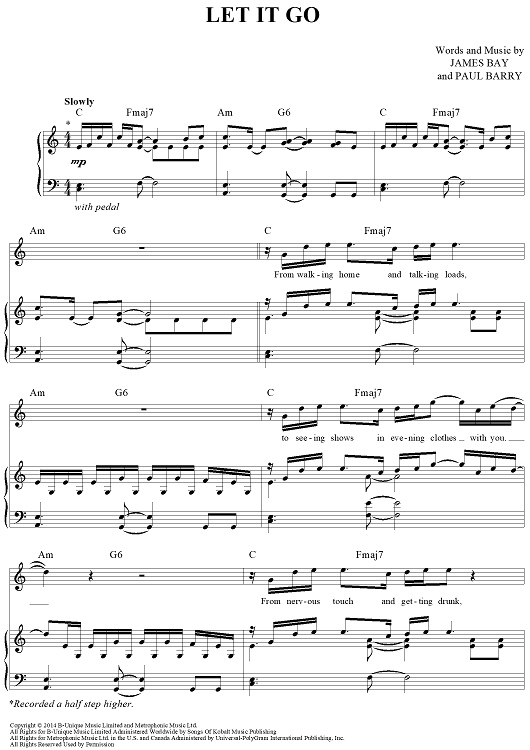 Digital Sheet Music for Let It Go by Paul Barry, James Bay scored for Piano/Vocal/Chords; id:456823