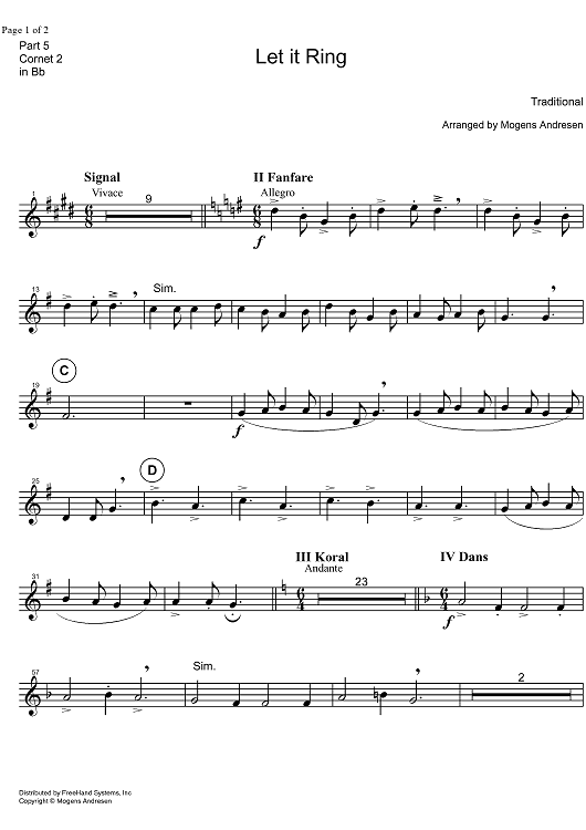 Digital Sheet Music for Let it Ring - B-flat Cornet by Mogens Andresen, Traditional scored for Brass Ensemble; id:323798