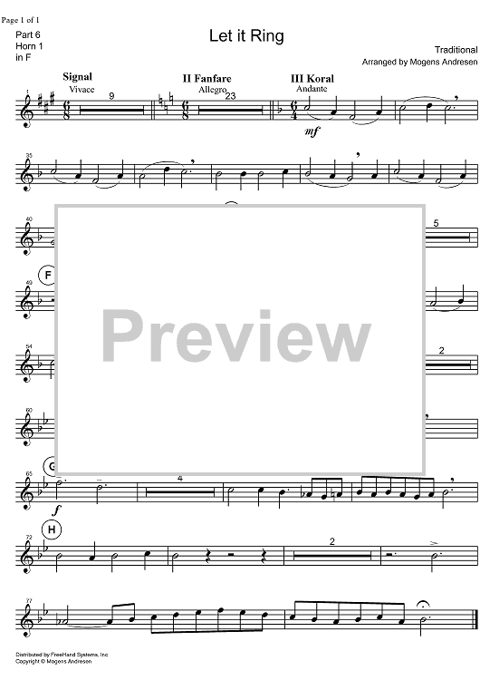 Digital Sheet Music for Let it Ring - Horn in F by Mogens Andresen, Traditional scored for Brass Ensemble; id:323800