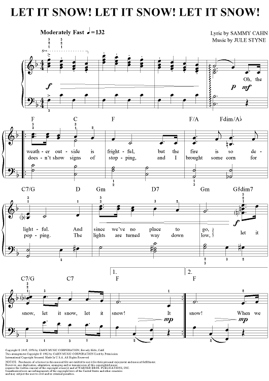 Digital Sheet Music for Let It Snow! Let It Snow! Let It Snow! by Jule Styne, Sammy Cahn, Bing Crosby, Dean Martin, Jessica Simpson, Vaughn Monroe, Michael Buble scored for Easy Piano/Vocal; id:259354