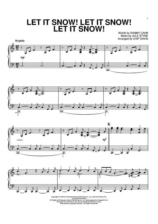 Digital Sheet Music for Let It Snow! Let It Snow! Let It Snow! by Jule Styne, Sammy Cahn, Mannheim Steamroller scored for Piano; id:402738