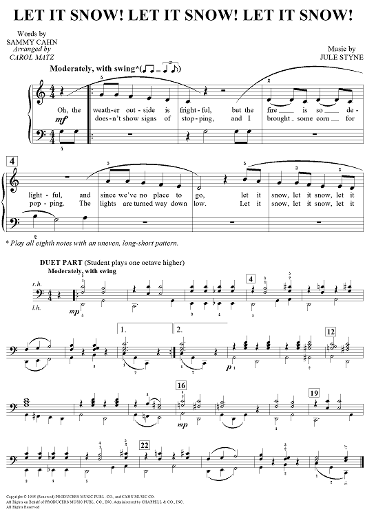 Digital Sheet Music for Let It Snow! Let It Snow! Let It Snow! by Jule Styne, Sammy Cahn, Carol Matz scored for Piano; id:453440