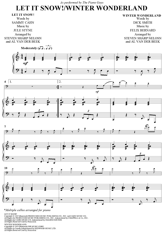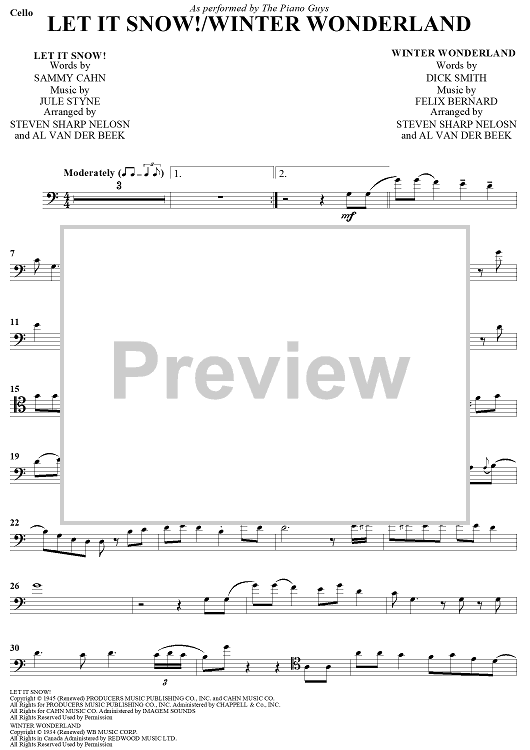 Digital Sheet Music for Let It Snow! / Winter Wonderland by Jule Styne, Sammy Cahn, Felix Bernard, Dick Smith, Al Van Der Beek, Steven Sharp Nelson, The Piano Guys scored for Cello and Piano; id:450036