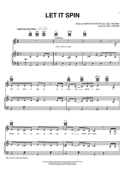 Digital Sheet Music for Let It Spin by Joel Higgins, Martin Silvestri scored for Piano/Vocal/Chords; id:386491