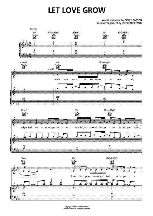 "Let Love Grow - from 9 To 5 The Musical" Sheet Music by Dolly Parton