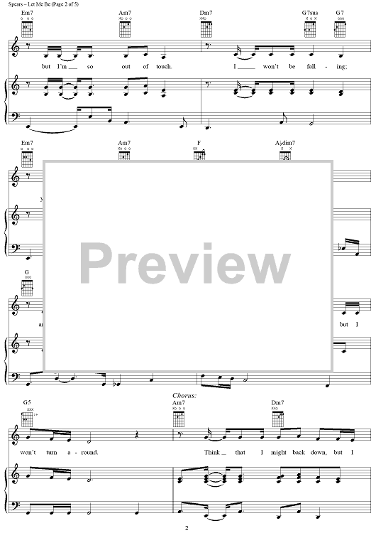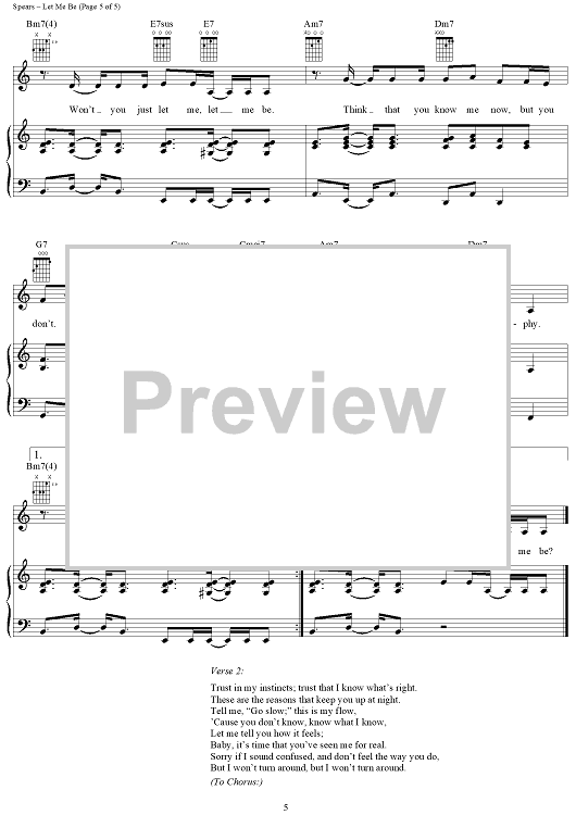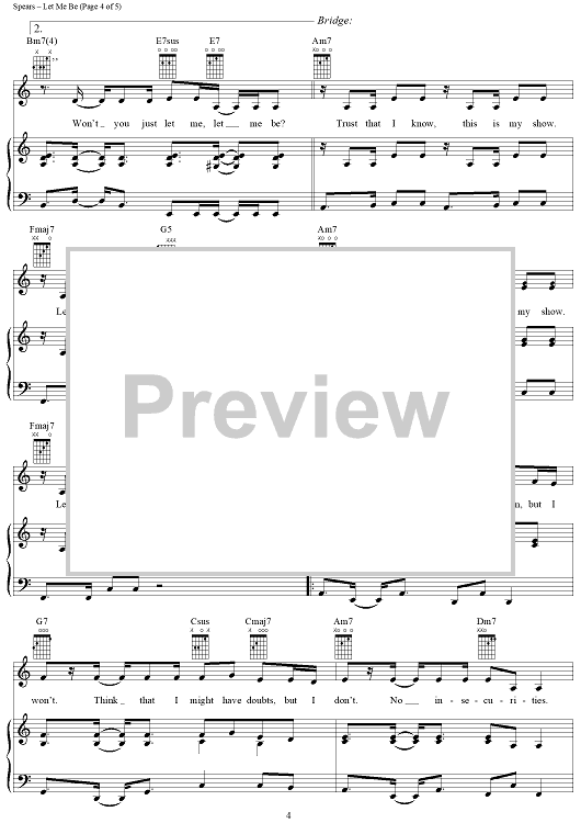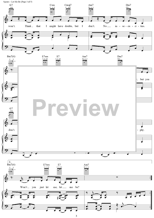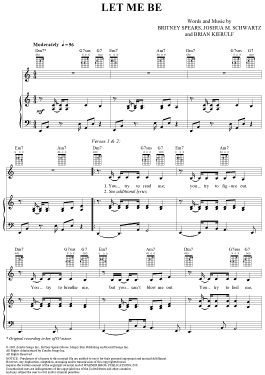 Digital Sheet Music for Let Me Be by Brian Kierulf, Joshua M. Schwartz, Britney Spears scored for Piano/Vocal/Chords; id:286573