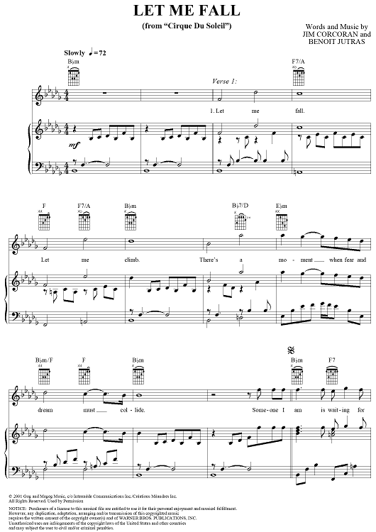 Digital Sheet Music for Let Me Fall by Josh Groban, Guido Morra, Jim Corcoran, Benoit Jutras scored for Piano/Vocal/Chords; id:293545