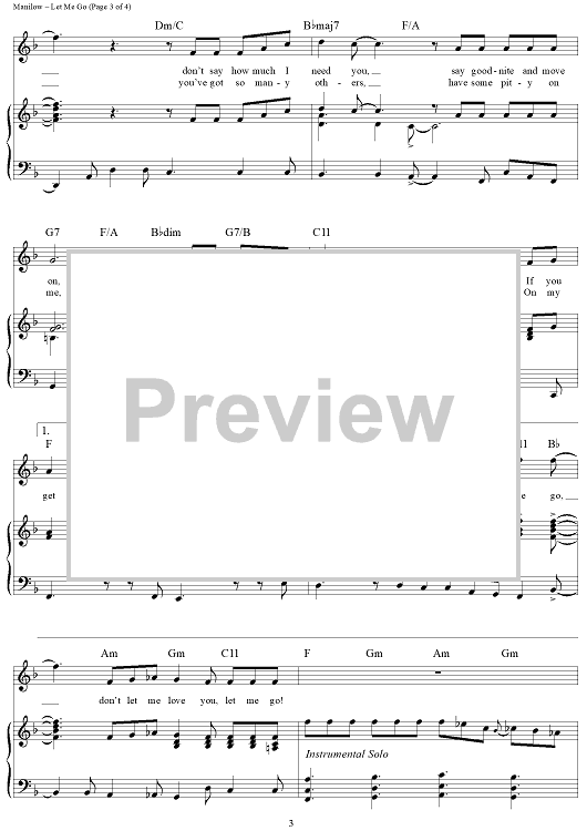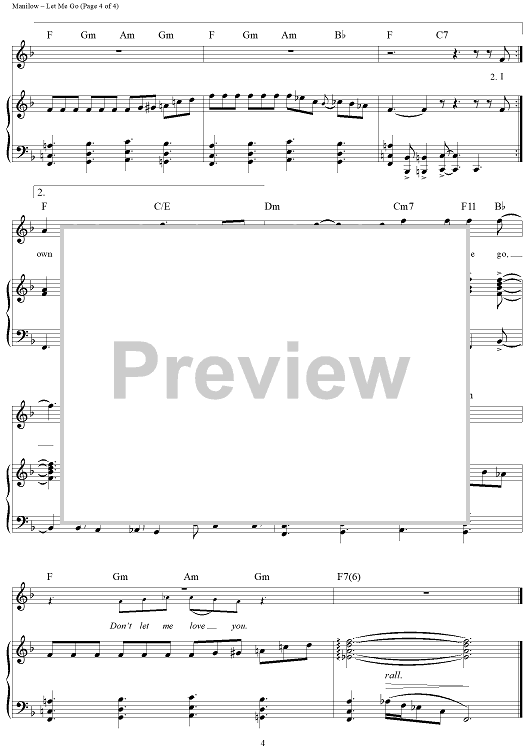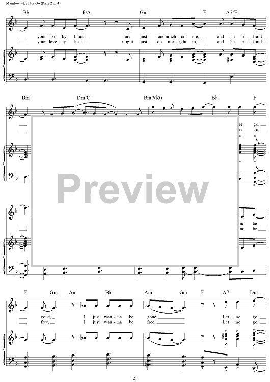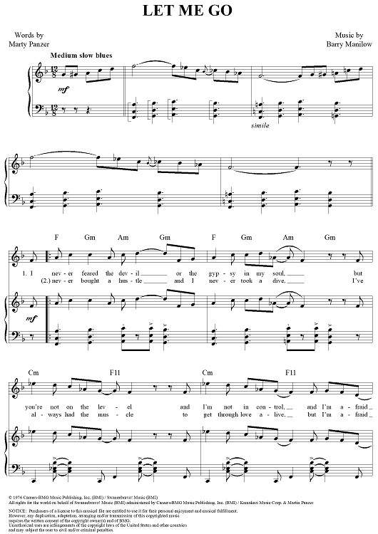 Digital Sheet Music for Let Me Go by Barry Manilow, Marty Panzer scored for Piano/Vocal/Chords; id:321289