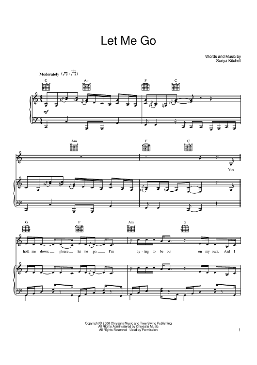 Digital Sheet Music for Let Me Go by Sonya Kitchell scored for Piano/Vocal/Chords; id:399353