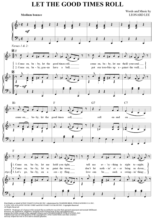 Digital Sheet Music for Let the Good Times Roll by B.B. King, Ray Charles, Leonard Lee scored for Piano/Vocal/Chords; id:125741