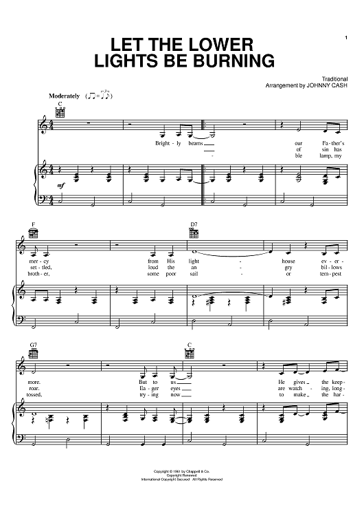 Digital Sheet Music for Let The Lower Lights Be Burning by Johnny Cash, Philip P. Bliss scored for Piano/Vocal/Chords; id:381199