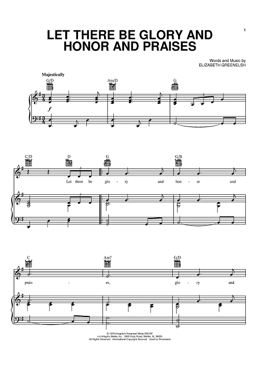 Digital Sheet Music for Let There Be Glory And Honor And Praises by Elizabeth Greenelsh scored for Piano/Vocal/Chords; id:374004