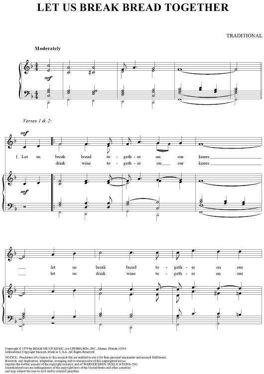 Digital Sheet Music for Let Us Break Bread Together by Traditional scored for Piano/Vocal; id:139885