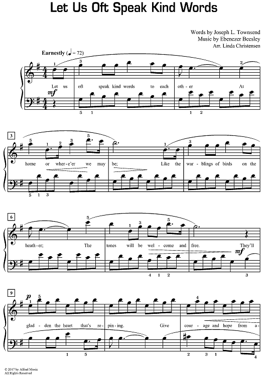 Digital Sheet Music for Let Us Oft Speak Kind Words by Linda Christensen, Joseph L. Townsend, Ebenezer Beesley scored for Piano Solo/opt.duet; id:498233