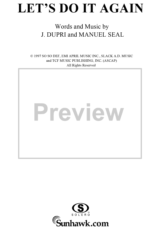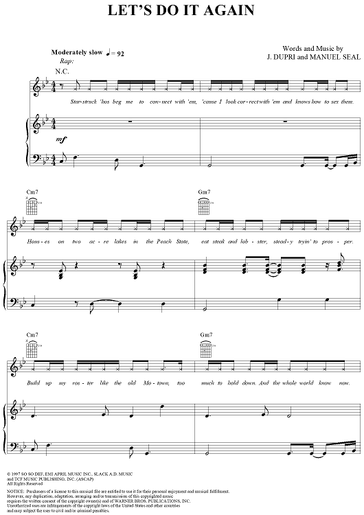 Digital Sheet Music for Let's Do It Again by Manuel Seal, Xscape, Jermaine Dupri scored for Piano/Vocal/Chords; id:116057