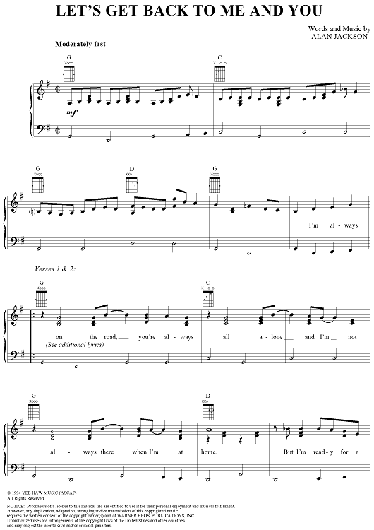 Digital Sheet Music for Let's Get Back to Me and You by Al Jackson Jr scored for Piano/Vocal/Chords; id:265334