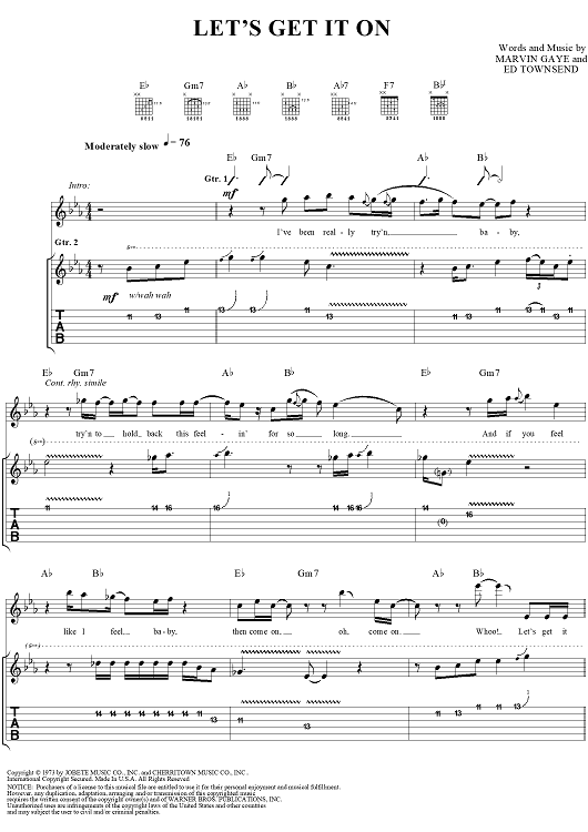 Digital Sheet Music for Let's Get It On by Marvin Gaye, Kenn Chipkin, Ed Townsend scored for Guitar Tab/Vocal; id:269074