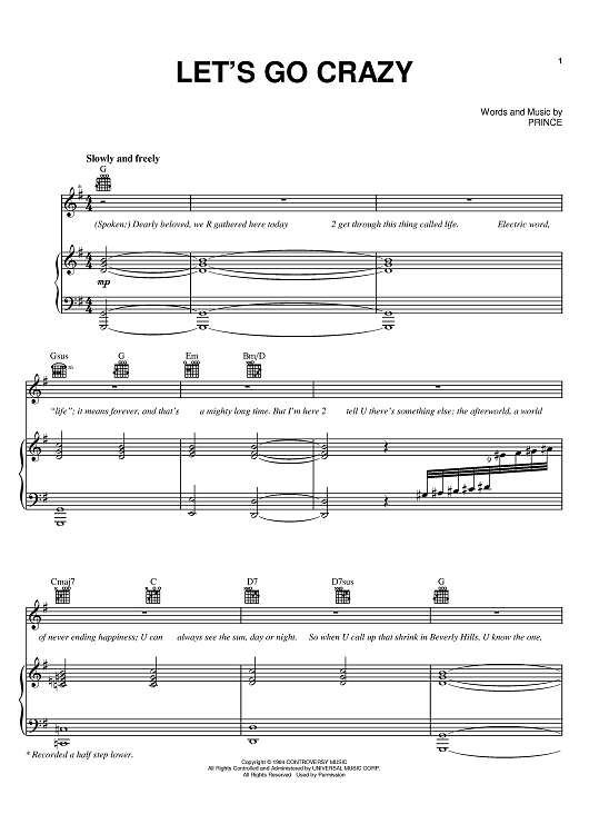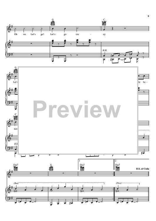 Digital Sheet Music for Let's Go Crazy by Prince scored for Piano/Vocal/Chords; id:398360