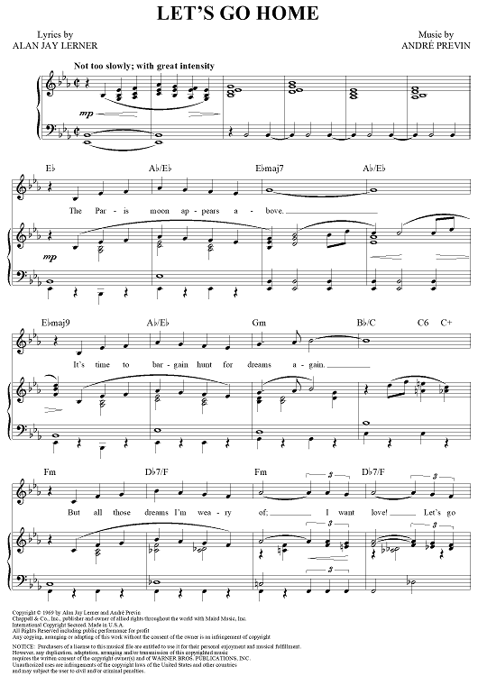Digital Sheet Music for Let's Go Home by Alan Jay Lerner, Andre Previn scored for Piano/Vocal/Chords; id:355973