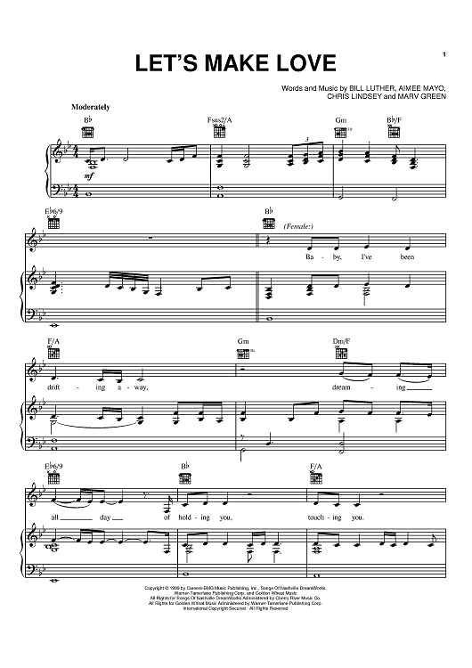 Digital Sheet Music for Let's Make Love by Tim McGraw, Faith Hill, Aimee Mayo, Chris Lindsey, Bill Luther scored for Piano/Vocal/Chords; id:368682