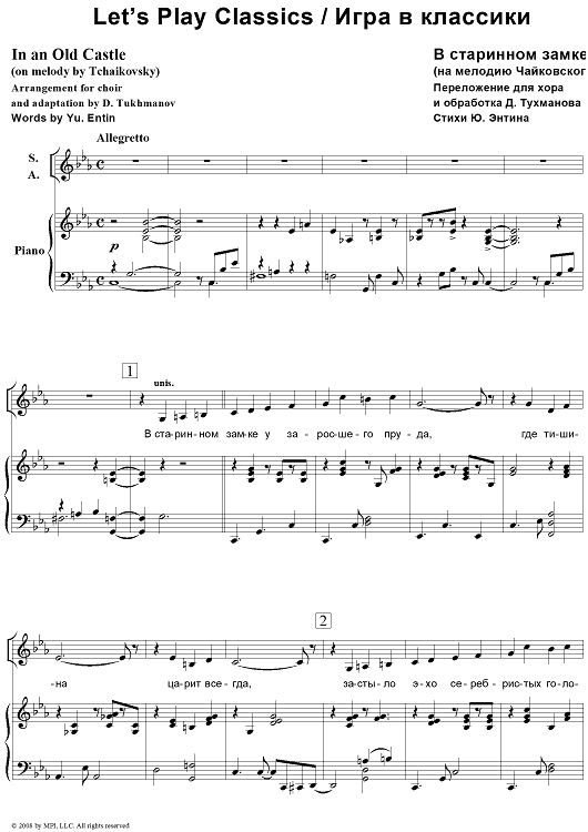 Digital Sheet Music for Let’s Play Classics. In an Old Castle by David Tukhmanov, Yuriy Entin, Peter Ilyich Tchaikovsky scored for Choir and Piano; id:403335