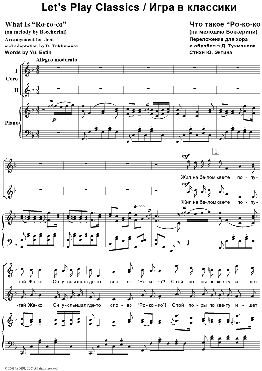 Digital Sheet Music for Let’s Play Classics. What Is “Ro-co-co” by Luigi Boccherini, David Tukhmanov, Yuriy Entin scored for Choir and Piano; id:403333