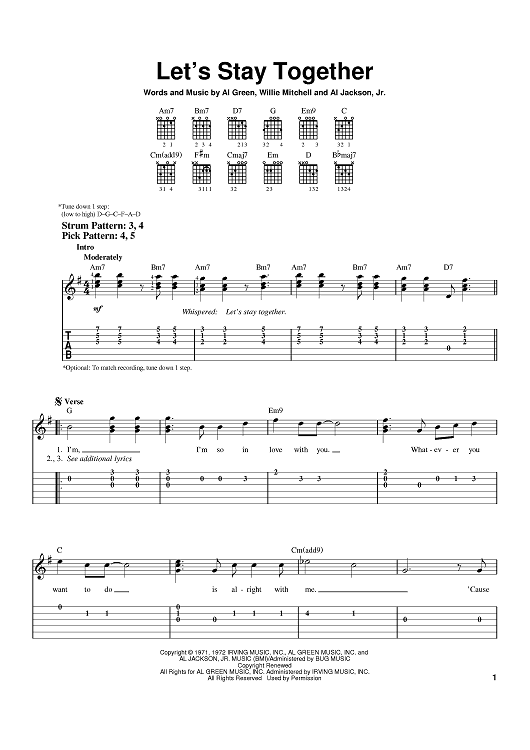 Digital Sheet Music for Let's Stay Together by Al Green, Willie Mitchell, Al Jackson Jr scored for Easy Guitar; id:370201
