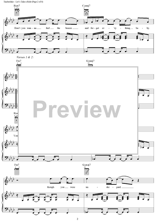 "Let's Take a Ride" Sheet Music by Justin Timberlake
