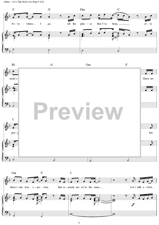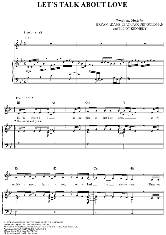 Digital Sheet Music for Let's Talk about Love by Celine Dion, Bryan Adams, Eliot Kennedy, Jean-Jacques Goldman scored for Piano/Vocal/Chords; id:277965